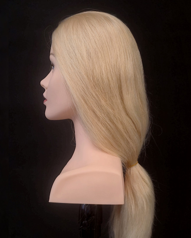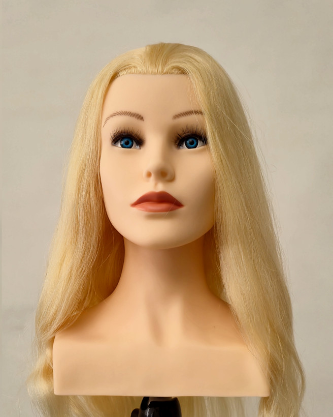 همانطور که در تصویر محصول میبینید، این کله مانکن دارای ظاهری بسیار زیبا با موهای بلوند میباشد.