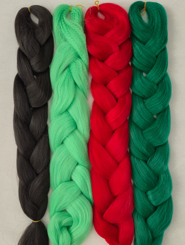 ترکیبات: ۳ بسته موی دوسرباز ، مشکی ، دو رنگ سبز و قرمز