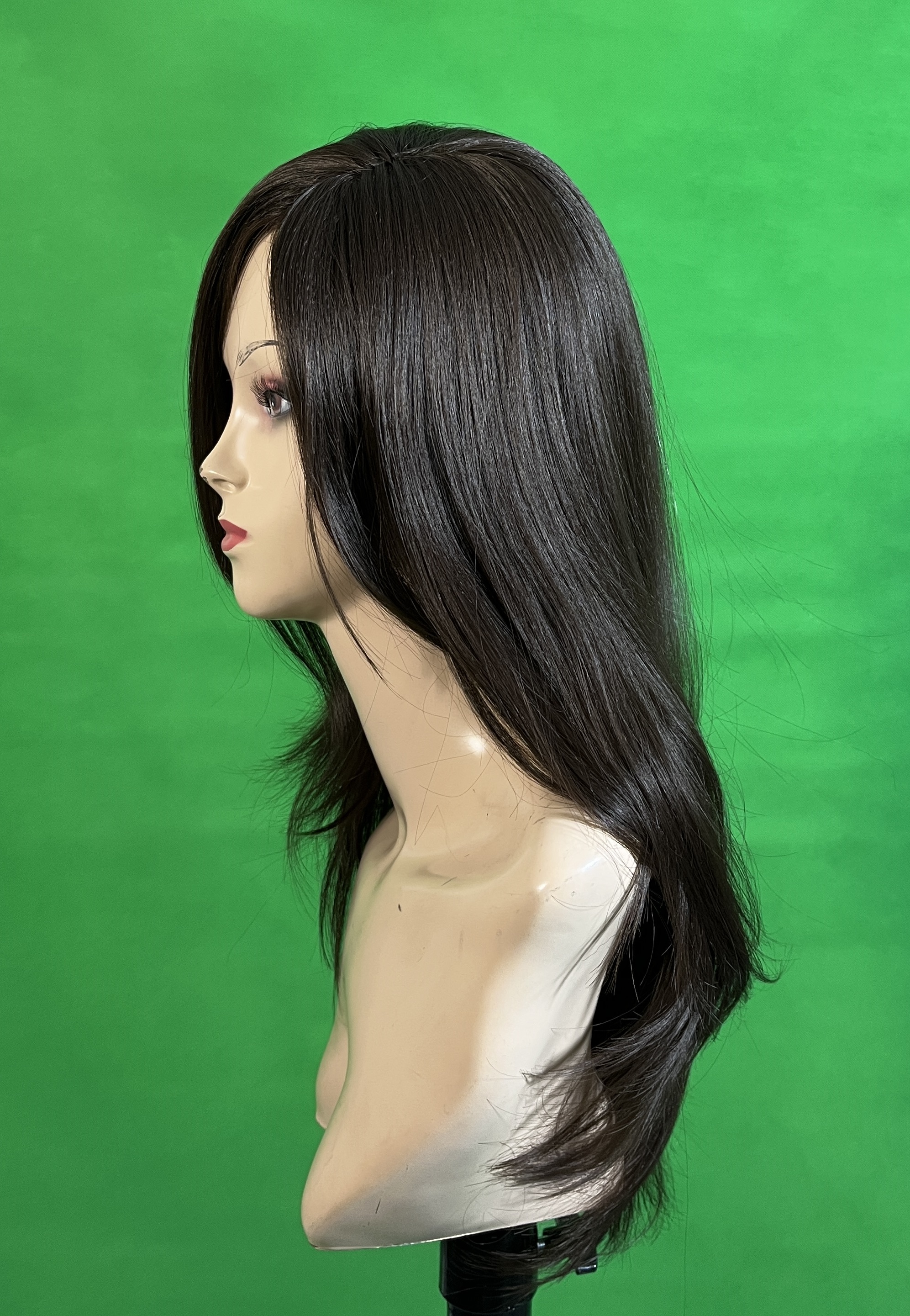 2. طراحی فرق سر از کنار: طراحی خاص فرق سر از کنار، به شما این امکان را میدهد که ظاهری طبیعی و زیبا داشته باشید. این ویژگی باعث میشود تا کلاه گیس به راحتی با خط موی شما ترکیب شود و جلوهای واقعیتر ایجاد کند.